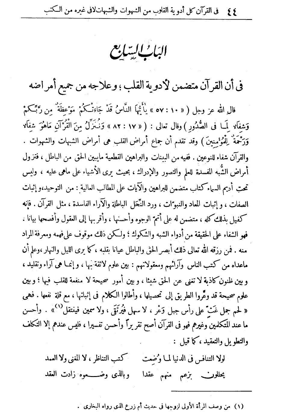 الباب السابع: فى أن القرآن متضمن لأدوية القلب، وعلاجه من جميع أمراضه