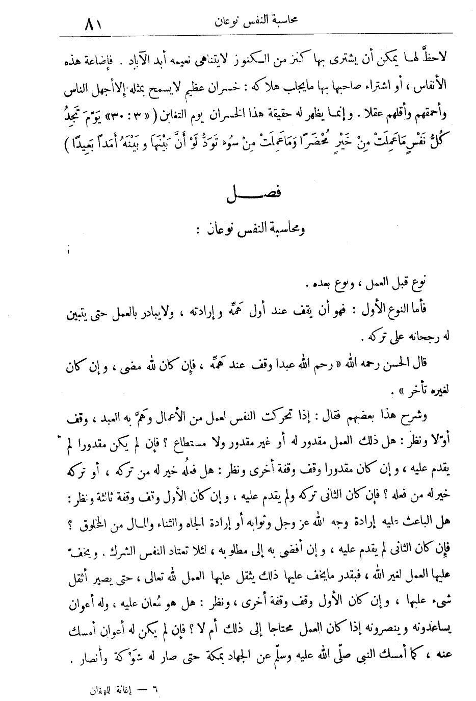 ومحاسبة النفس نوعان: نوع قبل العمل، ونوع بعده.