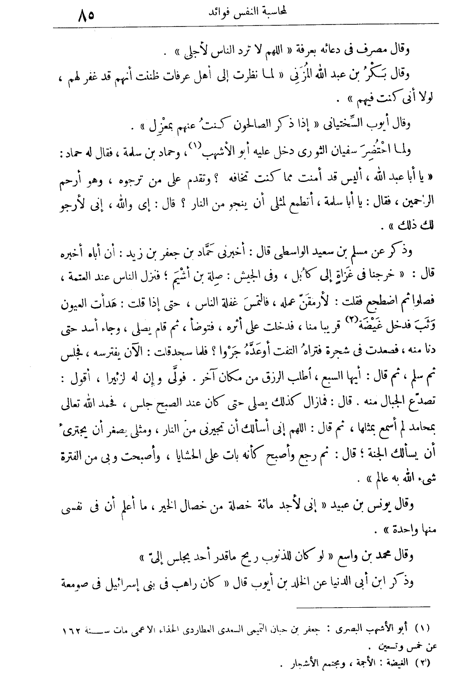 وقال يونس بن عبيد: "إنى لأجد مائة خصلة من خصال الخير ما أعلم أن فى نفسي منها واحدة".
