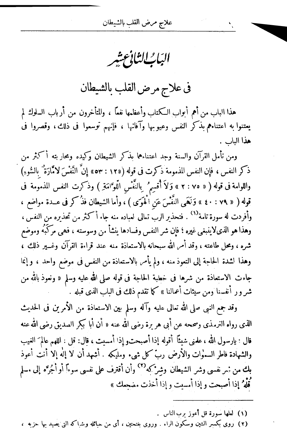 الباب الثانى عشر: فى علاج مرض القلب بالشيطان