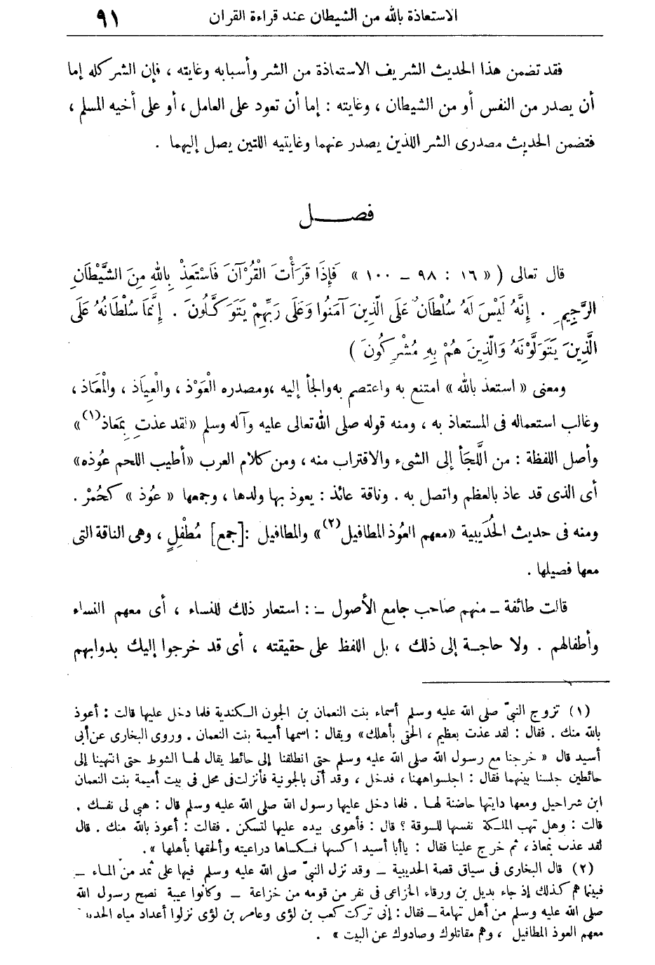 قال تعالى: {فَإِذَا قَرَأْتَ الْقُرْآنَ فَاسْتَعِذْ بِاللهِ مِنَ الشّيْطَانِ الرَّجِيمِ إِنّهُ لَيْسَ لَهُ سَلْطَانٌ عَلَى الَّذِينَ آمَنُوا وَعَلَى رَبِّهِمْ يَتَوَكَّلُونَ إِنَّما سُلطَانُهُ عَلَى الّذِينَ يَتَوَلَّوْنَهُ وَالّذِينَ هُمْ بِه مُشْرِكُونَ} [النحل: 98 - 100] .