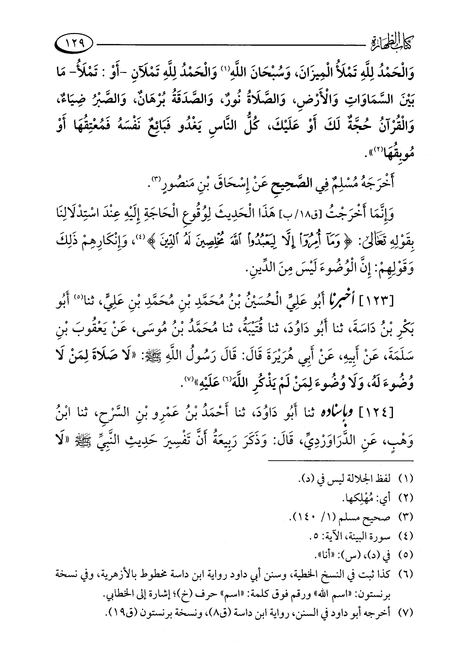 (¬7) أخرجه أبو داود في السنن، رواية ابن داسة (ق 8)، ونسخة برنستون (ق 19).