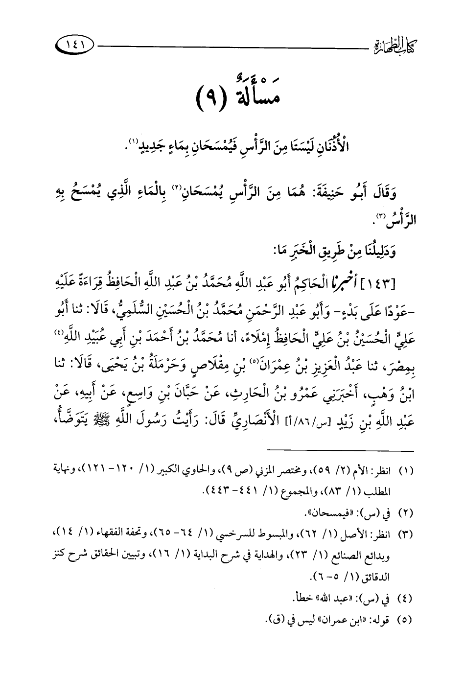 [143] أخبرنا الْحَاكِمُ أَبُو عَبْدِ اللَّهِ مُحَمَّدُ بْنُ عَبْدِ اللَّهِ الْحَافِظُ قِرَاءَةً عَلَيْهِ - عَوْدًا عَلَى بَدْءٍ - وَأَبُو عَبْدِ الرَّحْمَنِ مُحَمَّدُ بْنُ الْحُسَيْنِ السُّلَمِيُّ، قَالَا: ثنا أَبُو عَلِيٍّ الْحُسَيْنُ بْنُ عَلِيٍّ الْحَافِظُ إِمْلَاءً، أنا مُحَمَّدُ بْنُ أَحْمَدَ بْنِ أَبِي عُبَيْدِ اللَّهِ (¬4) بِمِصْرَ، ثنا عَبْدُ الْعَزِيزِ بْنُ عِمْرَانَ (¬5) بْنِ مِقْلَاصٍ وَحَرْمَلَةُ بْنُ يَحْيَى، قَالَا: ثنا ابْنُ وَهْبٍ، أَخْبَرَنِي عَمْرُو بْنُ الْحَارِثِ، عَنْ حَبَّانَ بْنِ وَاسِعٍ، عَنْ أَبِيهِ، عَنْ عَبْدِ اللَّهِ بْنِ زيدٍ الْأَنْصَارِيِّ قَالَ: رَأَيْتُ رَسُولَ اللَّهِ - صلى الله عليه وسلم - يَتَوَضَّأُ،