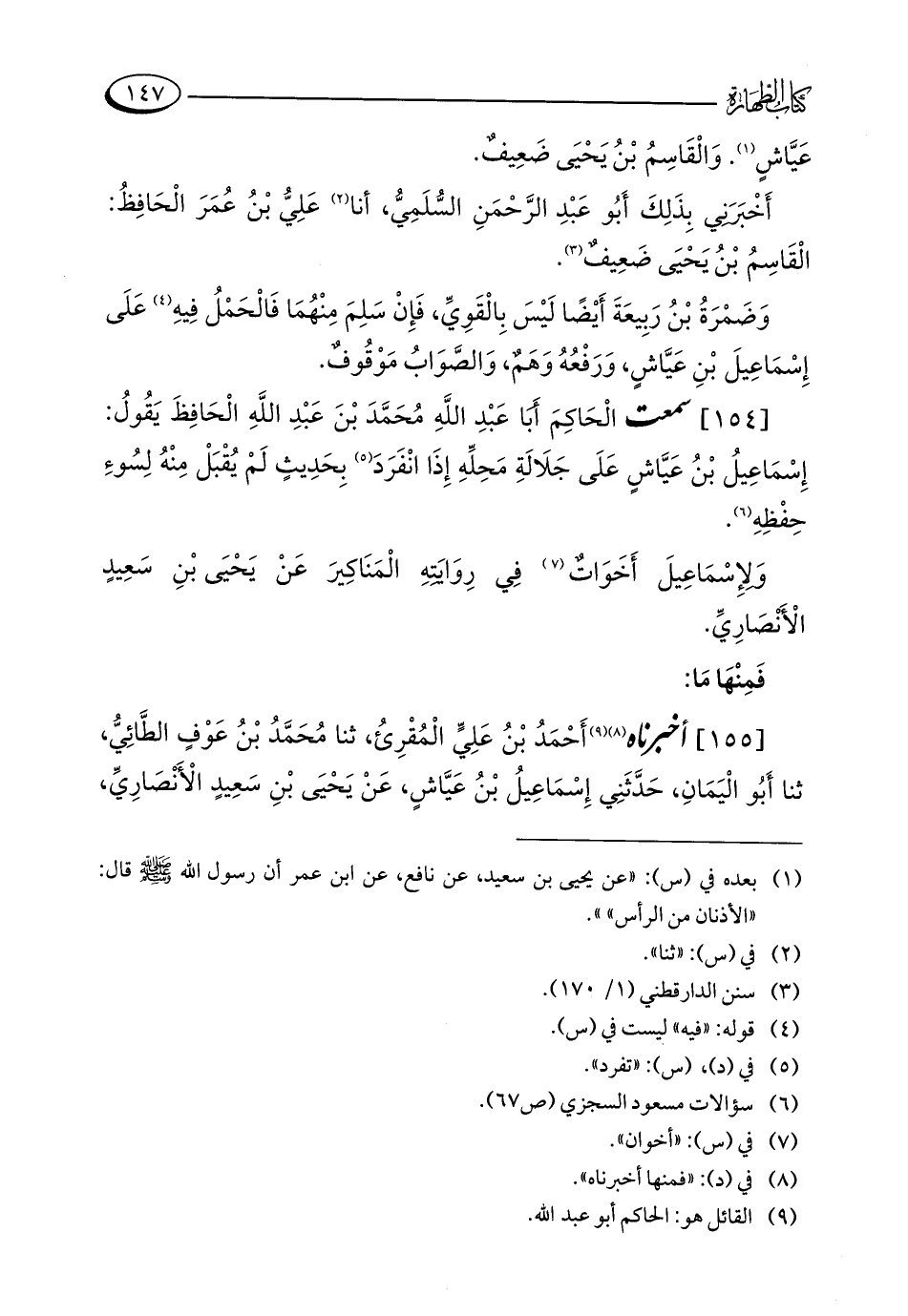 [154] سمعت الْحَاكِمَ أَبَا عَبْدِ اللَّهِ مُحَمَّدَ بْنَ عَبْدِ اللَّهِ الْحَافِظَ يَقُولُ: إِسْمَاعِيلُ بْنُ عَيَّاشٍ عَلَى جَلَالَةِ مَحِلِّهِ إِذَا انْفَرَدَ (¬5) بِحَدِيثٍ لَمْ يُقْبَلْ مِنْهُ لِسُوءِ حِفْظِهِ (¬6).