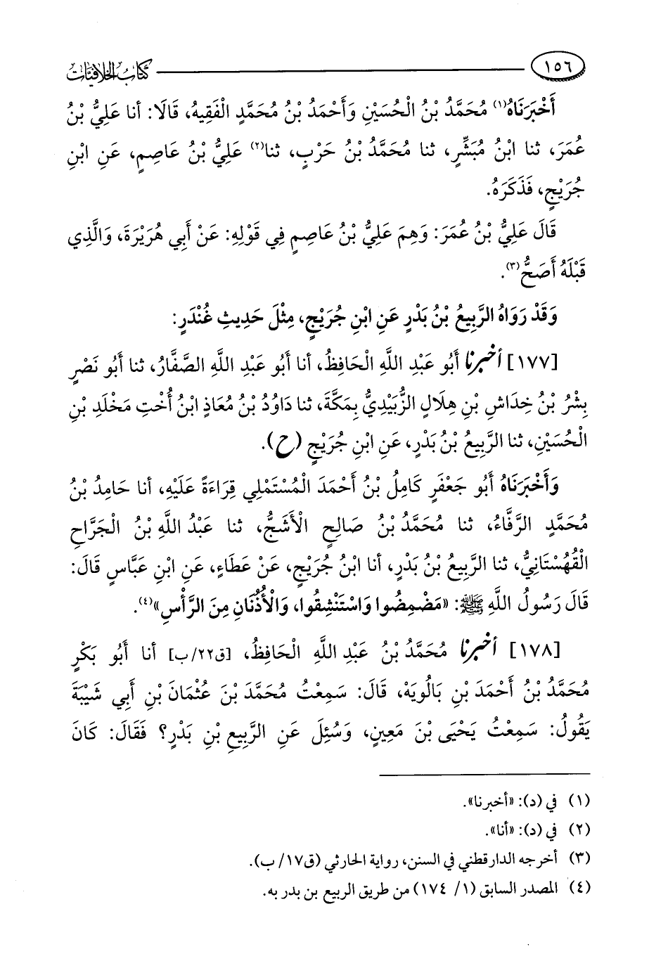 (¬3) أخرجه الدارقطني في السنن، رواية الحارثي (ق 17/ ب).