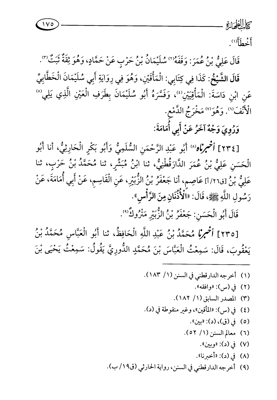 (¬9) أخرجه الدارقطني في السنن، رواية الحارثي (ق 19/ ب).