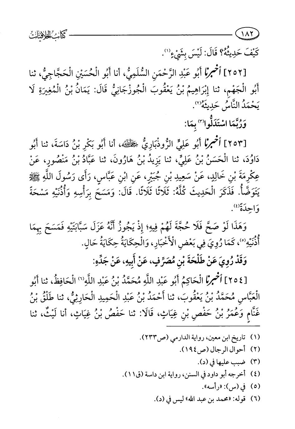[254] أخبرنا الْحَاكِمُ أَبُو عَبْدِ اللَّهِ مُحَمَّدُ بْنُ عَبْدِ اللَّهِ (¬6) الْحَافِظُ، ثنا أَبُو الْعَبَّاسِ مُحَمَّدُ بْنُ يَعْقُوبَ، ثنا أَحْمَدُ بْنُ عَبْدِ الْحَمِيدِ الْحَارِثِيُّ، ثنا طَلْقُ بْنُ غَنَّامٍ وَعُمَرُ بْنُ حَفْصِ بْنِ غِيَاثٍ، قَالَا: ثنا حَفْصُ بْنُ غِيَاثٍ، أنا لَيْثٌ، ثنا