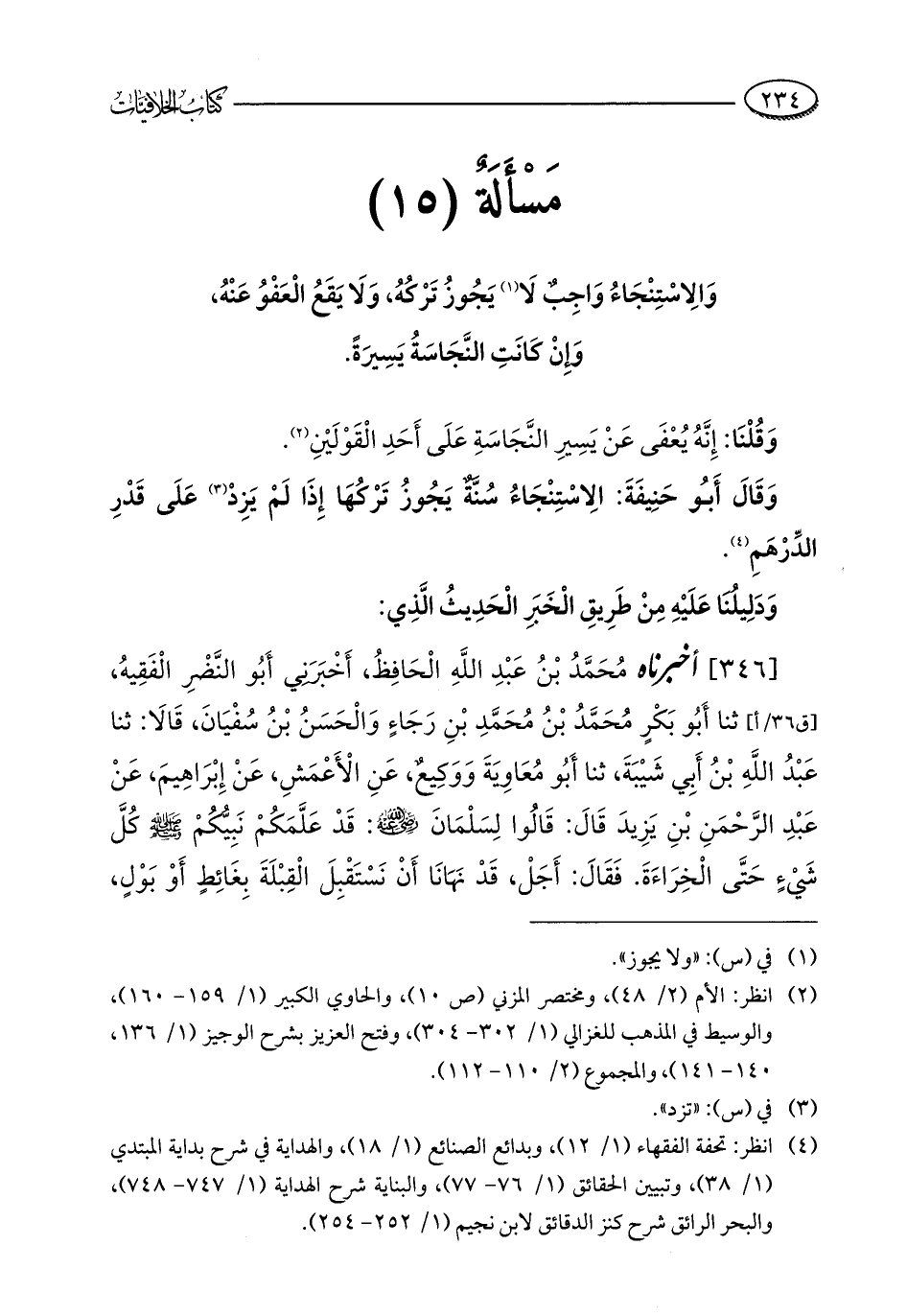 (¬4) انظر: تحفة الفقهاء (1/ 12)، وبدائع الصنائع (1/ 18)، والهداية في شرح بداية المبتدي (1/ 38)، وتبيين الحقائق (1/ 76 - 77)، والبناية شرح الهداية (1/ 747 - 748)، والبحر الرائق شرح كنز الدقائق لابن نجيم (1/ 252 - 254).
