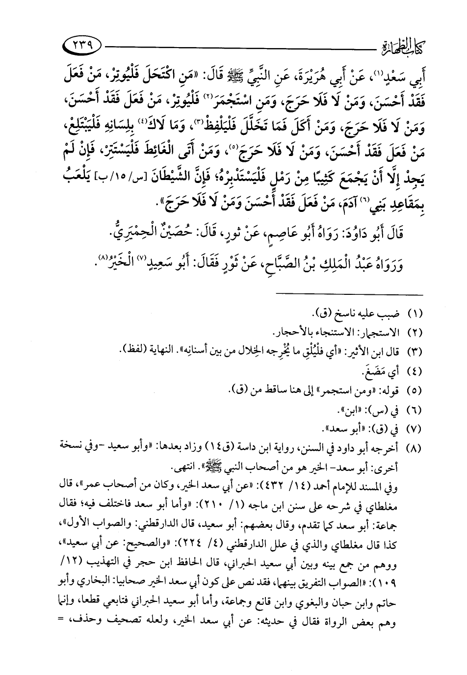 (¬8) أخرجه أبو داود في السنن، رواية ابن داسة (ق 14) وزاد بعدها: "وأبو سعيد - وفي نسخة أخرى: أبو سعد - الخير هو من أصحاب النبي - صلى الله عليه وسلم -". انتهى.