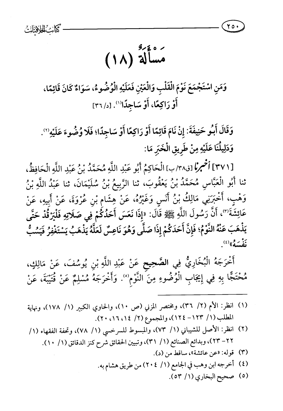 مَسْأَلَةٌ (18): وَمَنِ اسْتَجْمَعَ نَوْمَ الْقَلْبِ وَالْعَيْنِ فَعَلَيْهِ الْوُضُوءُ، سَوَاءٌ كَانَ قَائِمًا، أَوْ رَاكِعًا، أَوْ سَاجِدًا (¬1).