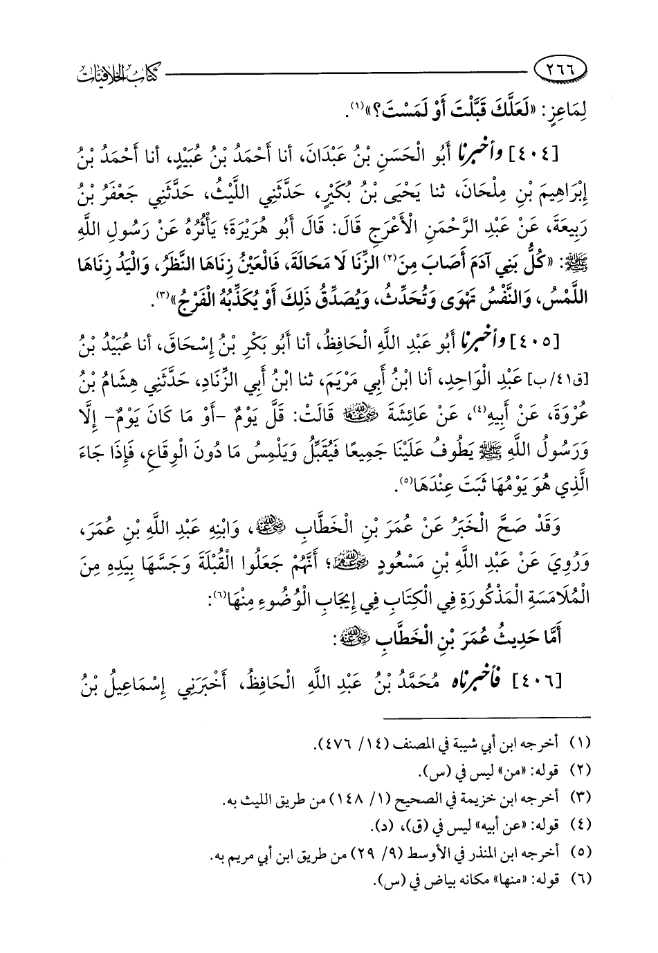 [406] فأخبرناه مُحَمَّدُ بْنُ عَبْدِ اللَّهِ الْحَافِظُ، أَخْبَرَنِي إِسْمَاعِيلُ بْنُ