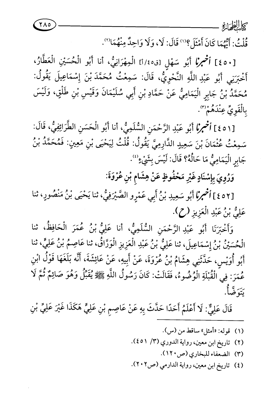 (¬4) تاريخ ابن معين، رواية الدارمي (ص 202).