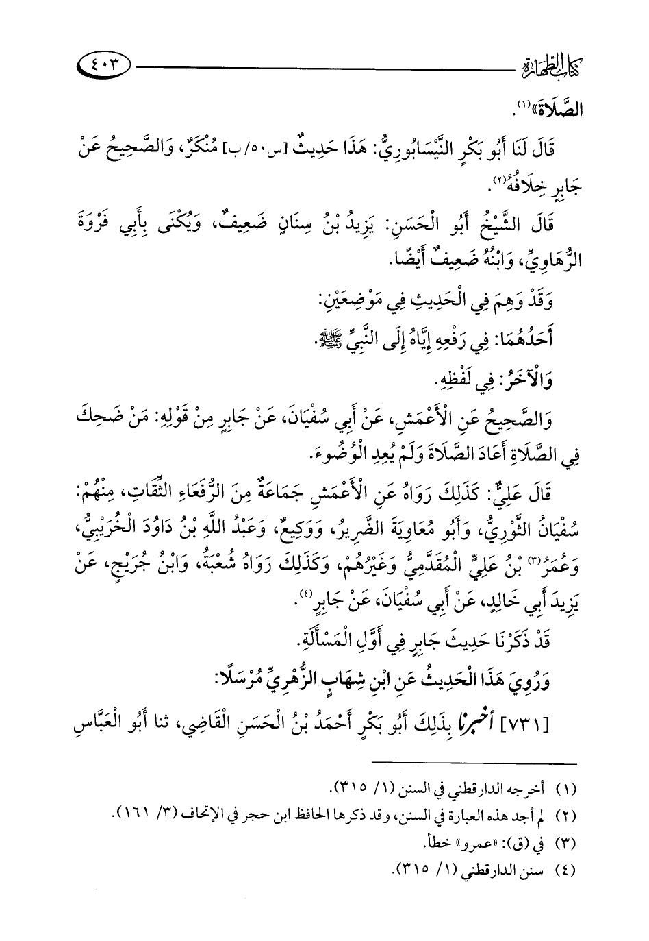 [731] أخبرنا بِذَلِكَ أَبُو بَكْرٍ أَحْمَدُ بْنُ الْحَسَنِ الْقَاضِي، ثنا أَبُو الْعَبَّاسِ