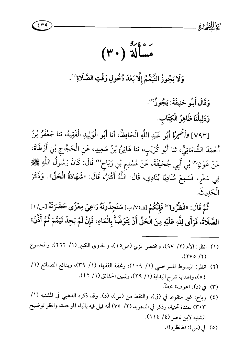 (¬2) انظر: المبسوط للسرخسي (1/ 109)، وتحفة الفقهاء (1/ 39)، وبدائع الصنائع (1/ 54)، والهداية شرح البداية (1/ 29)، وتبيين الحقائق (1/ 42).
