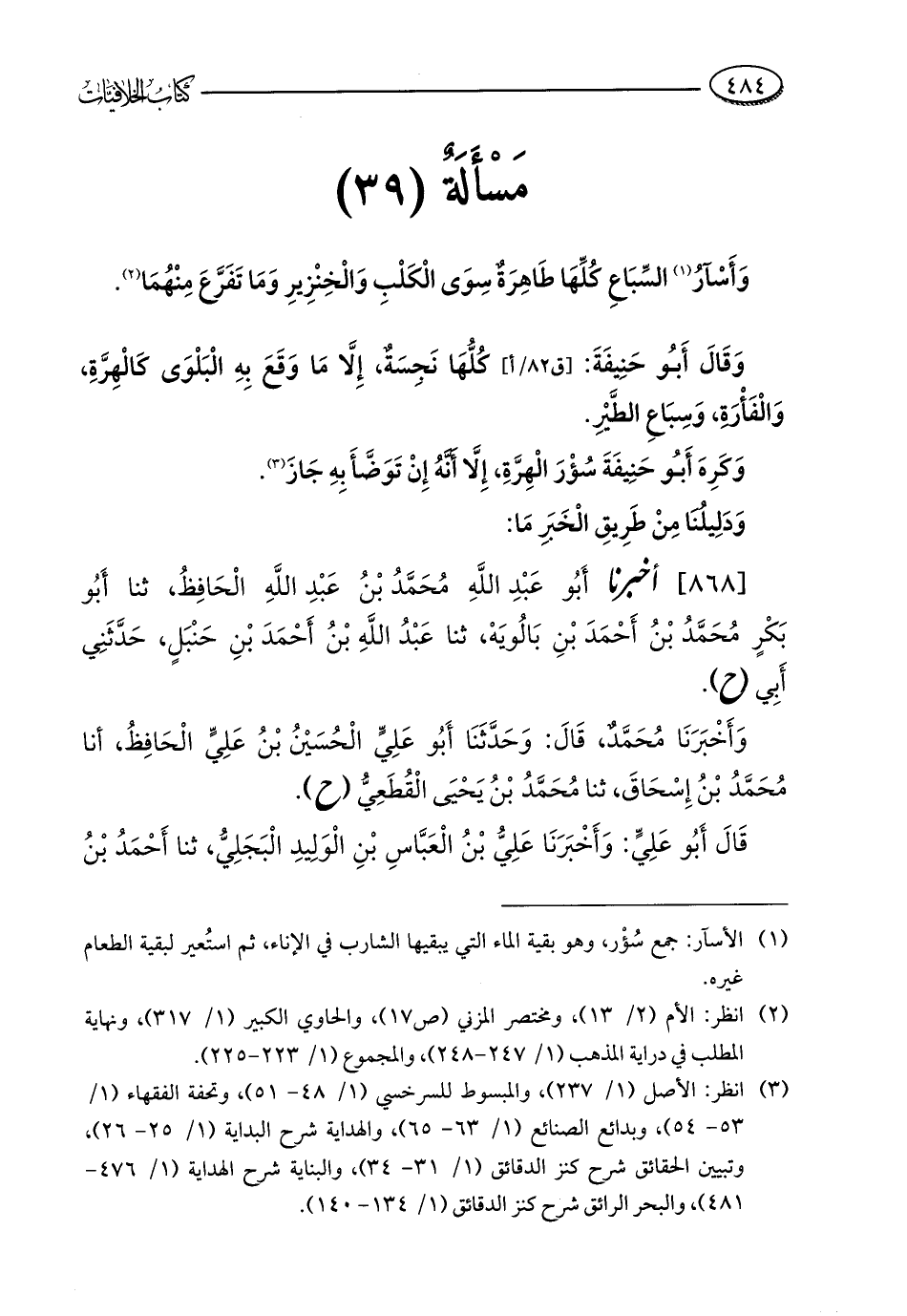 (¬3) انظر: الأصل (1/ 237)، والمبسوط للسرخسي (1/ 48 - 51)، وتحفة الفقهاء (1/ 53 - 54)، وبدائع الصنائع (1/ 63 - 65)، والهداية شرح البداية (1/ 25 - 26)، وتبيين الحقائق شرح كنز الدقائق (1/ 31 - 34)، والبناية شرح الهداية (1/ 476 - 481)، والبحر الرائق شرح كنز الدقائق (1/ 134 - 140).