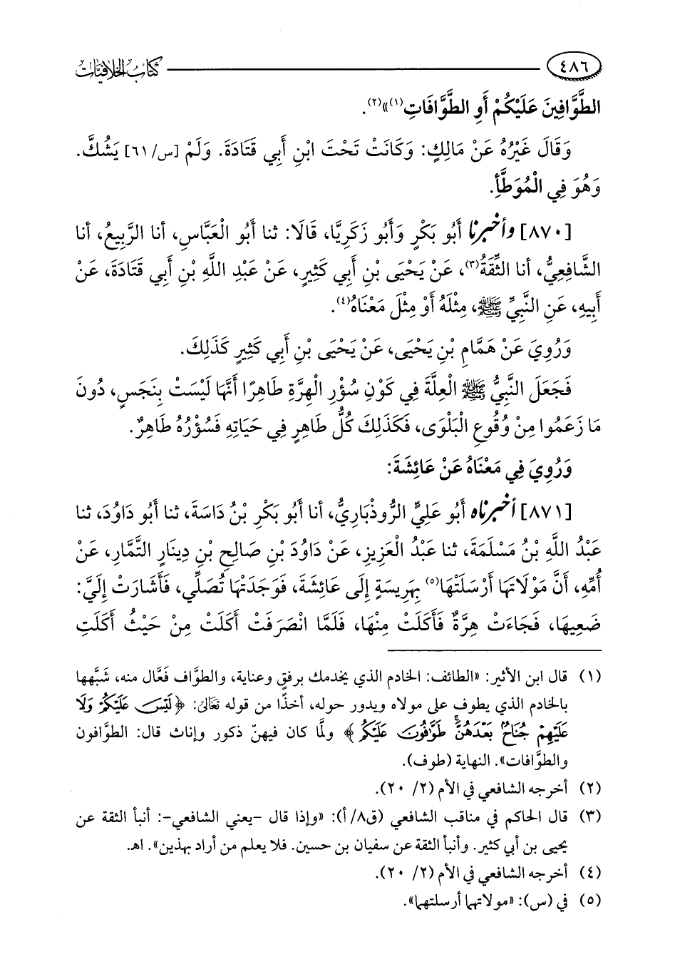 الطَّوَّافِينَ عَلَيْكُمْ أَوِ الطَّوَّافَاتِ (¬1) " (¬2).