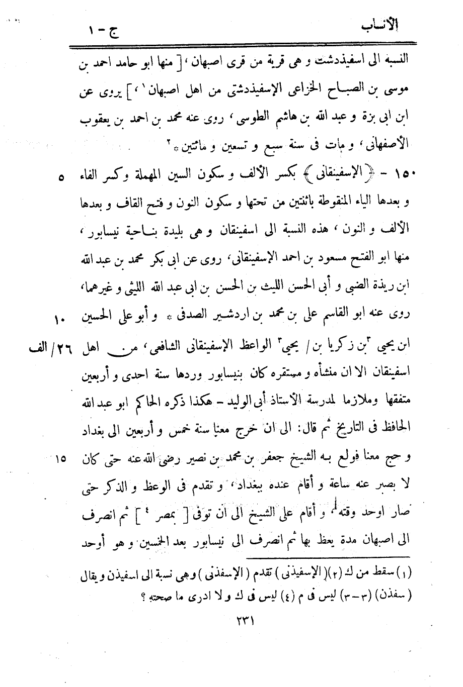 [2] (الإسفيذنى) تقدم (الإسفذني) وهي نسبة الى اسفيذن ويقال (سفذن)
