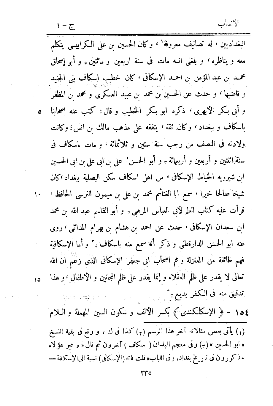 [3] وفي معجم البلدان (إسكاف) آخرون ثم قال «وغير هؤلاء مذكورون في تاريخ بغداد، وفي اللباب «قلت فاته (الإسكافي) نسبة الى الأسكفة