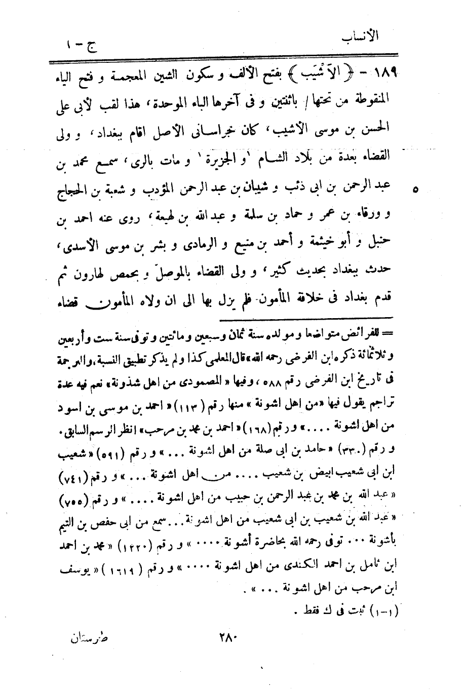 [ () ] للفرائض متواضعا ومولده سنة ثمان وسبعين ومائتين وتوفى سنة ست وأربعين وثلاثمائة ذكره ابن الفرضيّ رحمه الله» قال المعلمي كذا ولم يذكر تطبيق النسبة والترجمة في تاريخ ابن الفرضيّ رقم 588، وفيها «المصمودي من أهل شذونة» نعم فيه عدة تراجم يقول فيها «من أهل اشونة» منها رقم (113) «احمد بن موسى بن اسود من أهل اشونة ... » ورقم (168) «احمد بن محمد بن مرحب» انظر الرسم السابق.