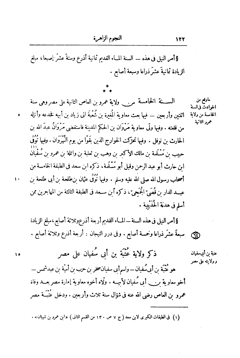 *** السنة الخامسة من ولاية عمرو بن العاص الثانية على مصر وهي سنة اثنتين وأربعين- فيها بعث معاوية المغيرة بن شعبة الى زياد بن أبيه فخدعه وأنزله من قلعته. وفيها ولى معاوية مروان بن الحكم المدينة فاستقضى مروان عبد الله بن الحارث بن نوفل. وفيها تحرّكت الخوارج الذين بقوا من يوم النهروان. وفيها توفي حبيب بن مسلمة بن مالك الأكبر بن وهب بن ثعلبة بن واثلة بن عمرو بن سفيان «1» ابن حارث أبو عبد الرحمن وقيل أبو مسلمة، ذكره ابن سعد في الطبقة الخامسة من أصحاب رسول الله صلى الله عليه وسلم. وفيها توفي عثمان بن طلحة بن أبي طلحة بن عبد الدار بن قصي الجمحي، ذكره ابن سعد في الطبقة الثالثة من المهاجرين ممن أسلم في هدنة الحديبية.