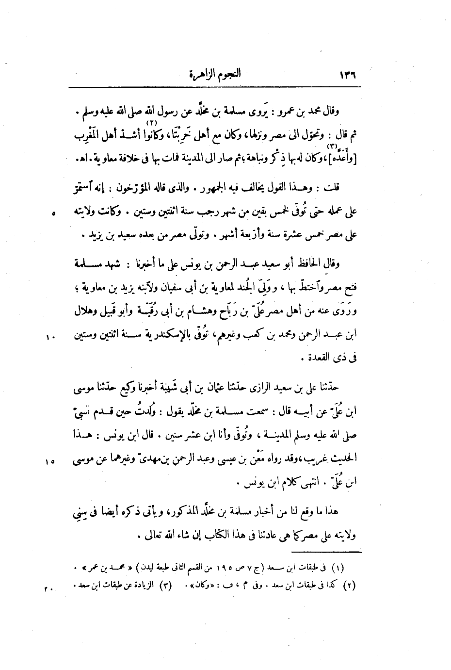 هذا ما وقع لنا من أخبار مسلمة بن مخلد المذكور، ويأتي ذكره أيضاً في سني ولايته على مصر كما هي عادتنا في هذا الكتاب إن شاء الله تعالى.