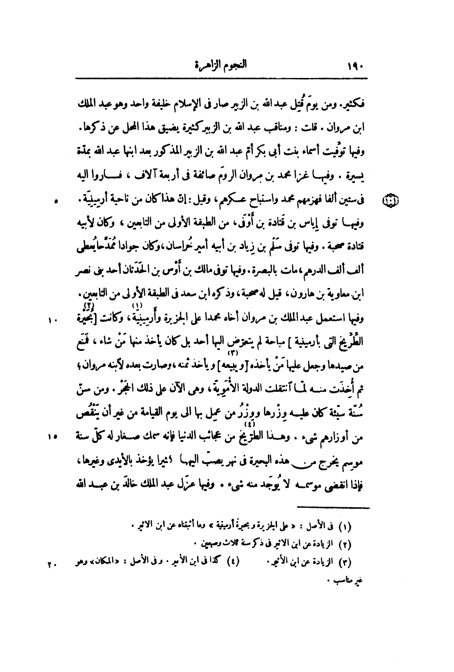 وفيها استعمل عبد الملك بن مروان أخاه محمداً على الجزيرة وأرمينية «1» ، وكانت [بحيرة «2» الطريخ التي بأرمينية] مباحة لم يتعرض إليها أحد بل كان يأخذ منها من شاء، فمنع من صيدها وجعل عليها من يأخذه [ويبيعه «3» ] ويأخذ ثمنه، وصارت بعده لابنه مروان؛ ثم أخذت منه لما انتقلت الدولة الأموية، وهي الآن على ذلك الحجر. ومن سن سنة سيئة كان عليه وزرها ووزر من عمل بها إلى يوم القيامة من غير أن ينقص من أوزارهم شيء. وهذا الطريخ «4» من عجائب الدنيا فإنه سمك صغار له كل سنة موسم يخرج من هذه البحيرة في نهر يصب إليها كثيراً يؤخذ بالأيدي وغيرها، فإذا انقضى موسمه لا يوجد منه شيء. وفيها عزل عبد الملك خالد بن عبد الله