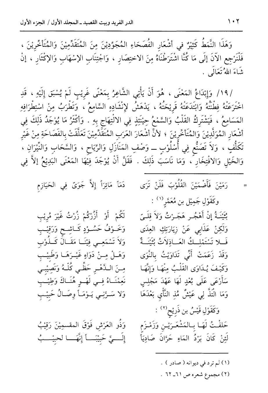 وَهَذَا النَّمَطُ كَثِيْرٌ في أشْعَارِ الفُصحَاءِ المُجَوِّدِيْنَ مِنَ المُتَقَدِّمِيْنَ وَالمُتَأخِّرِيْنَ، فَلْنَرْجِع الآنَ إلَى مَا كُنَّا اشْتَرَطْنَاهُ مِنَ الاختِصَارِ، وَاجْتِنَابِ الإسْهَابِ وَالإكْثَارِ، إِنْ شَاءَ اللَّهُ تَعَالَى.