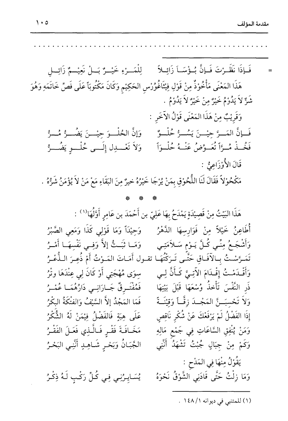 هَذَا البَيْتُ مِنْ قَصِيْدَةٍ يَمْدَحُ بِهَا عَلِيّ بن أَحْمَدَ بن عَامِرٍ أَوَّلُهَا (1):