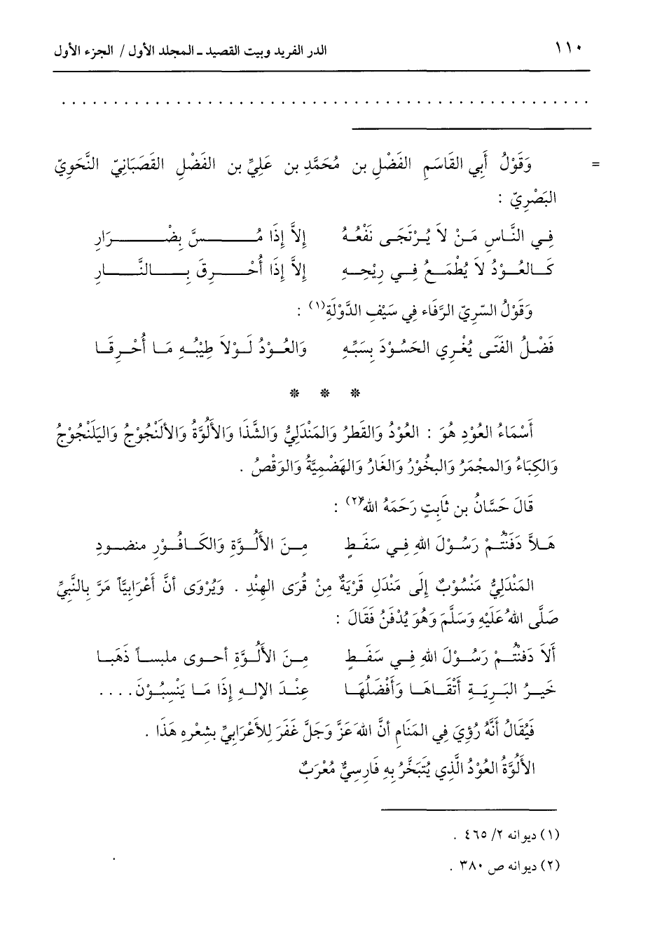 = وَقَوْلُ أَبِي القَاسَمِ الفَضْلِ بن مُحَمَّدِ بن عَلِيِّ بن الفَضْلِ القَصَبَانِيّ النَّحَوِيّ البَصْرِيّ: