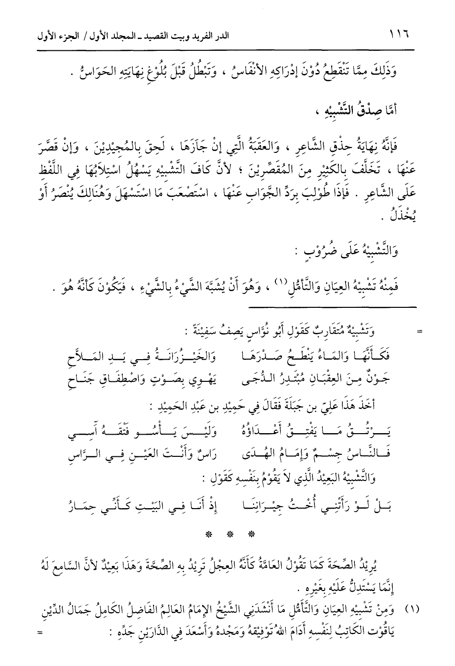 (¬1) وَمِنْ تَشْبِيْهِ العِيَانِ وَالتَّأَمُّلِ مَا أَنْشَدَنِي الشَّيْخُ الإِمَامُ العَالِمُ الفَاضِلُ الكَامِلُ جَمَالُ الدِّيْنِ يَاقُوْت الَكَاتِبُ لِنَفْسِهِ أَدَامَ اللَّهُ تَوْفِيْقهُ وَمَجْدهُ وَأَسْعَدَ فِي الدَّارَيْنِ جَدِّهِ: =