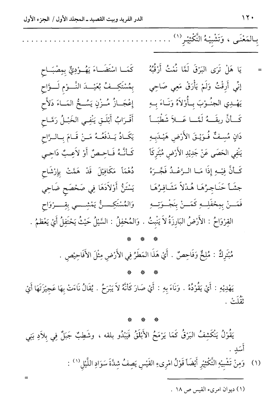 = يَا هَلْ تَرَى البَرْقَ لَمَّا نُمْتُ أَرْقُبُهُ ... كَمَا اسْتَضاءَ يَهُوْدِىٌّ بِمِصبَاحِ