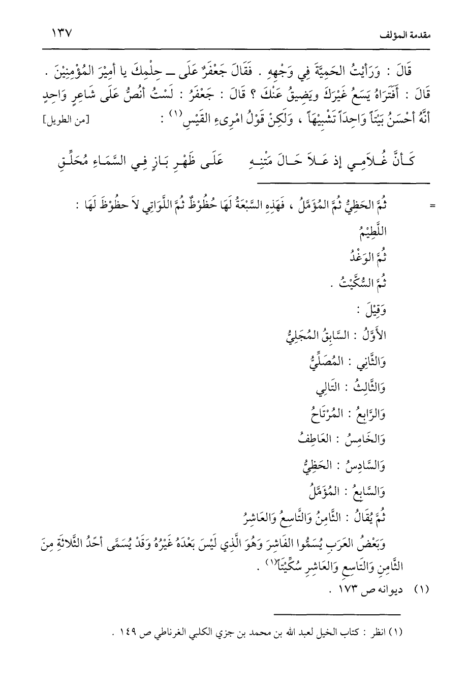 (1) انظر: كتاب الخيل لعبد اللَّه بن محمد بن جزي الكلبي الغرناطي ص 149.