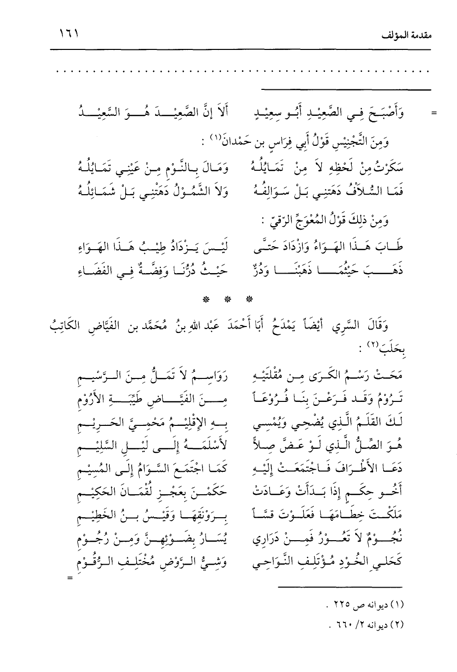 وَقَالَ السَّرِي أَيْضًا يَمْدَحُ أَبَا أَحْمَدَ عَبْد اللَّهِ بنُ مُحَمَّد بن الفَيَّاضِ الكَاتِبُ بِحَلَبَ (2):