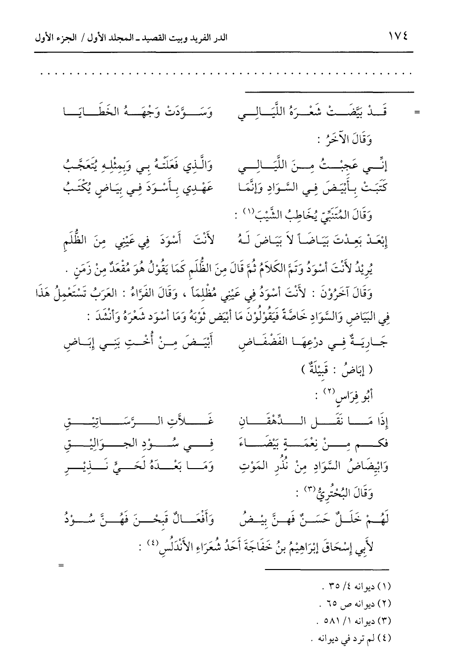 وَابْيِضَاضُ السَّوَادِ مِنْ نُذُرِ المَوْتِ ... وَمَا بَعْدَهُ لَحَيٍّ نَذِيْرِ