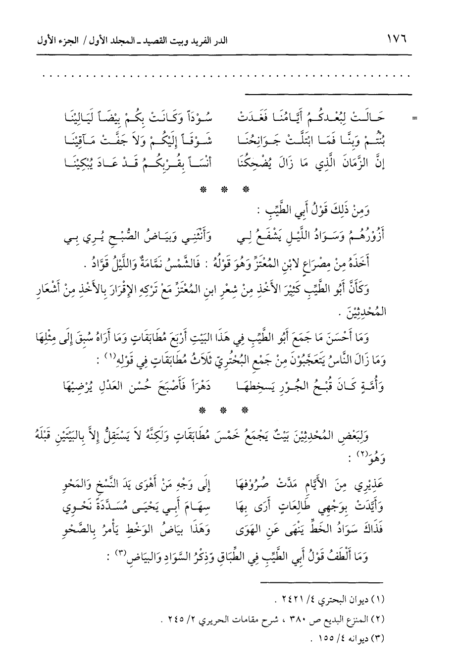 وَمَا أَلْطَفُ قَوْلُ أَبِي الطَّيِّبِ فِي الطِّبَاقِ وذِكْرُ السَّوَادِ وَالبيَاضِ (3):