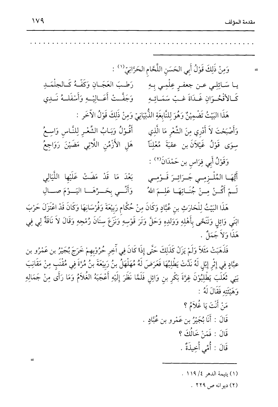 أَيُّهَا المُلْزِمِي جَرَائِرَ قَوْمِي ... بَعْدَ مَا قَدْ مَضتْ عَلَيْهِا اللَّيَالِي
