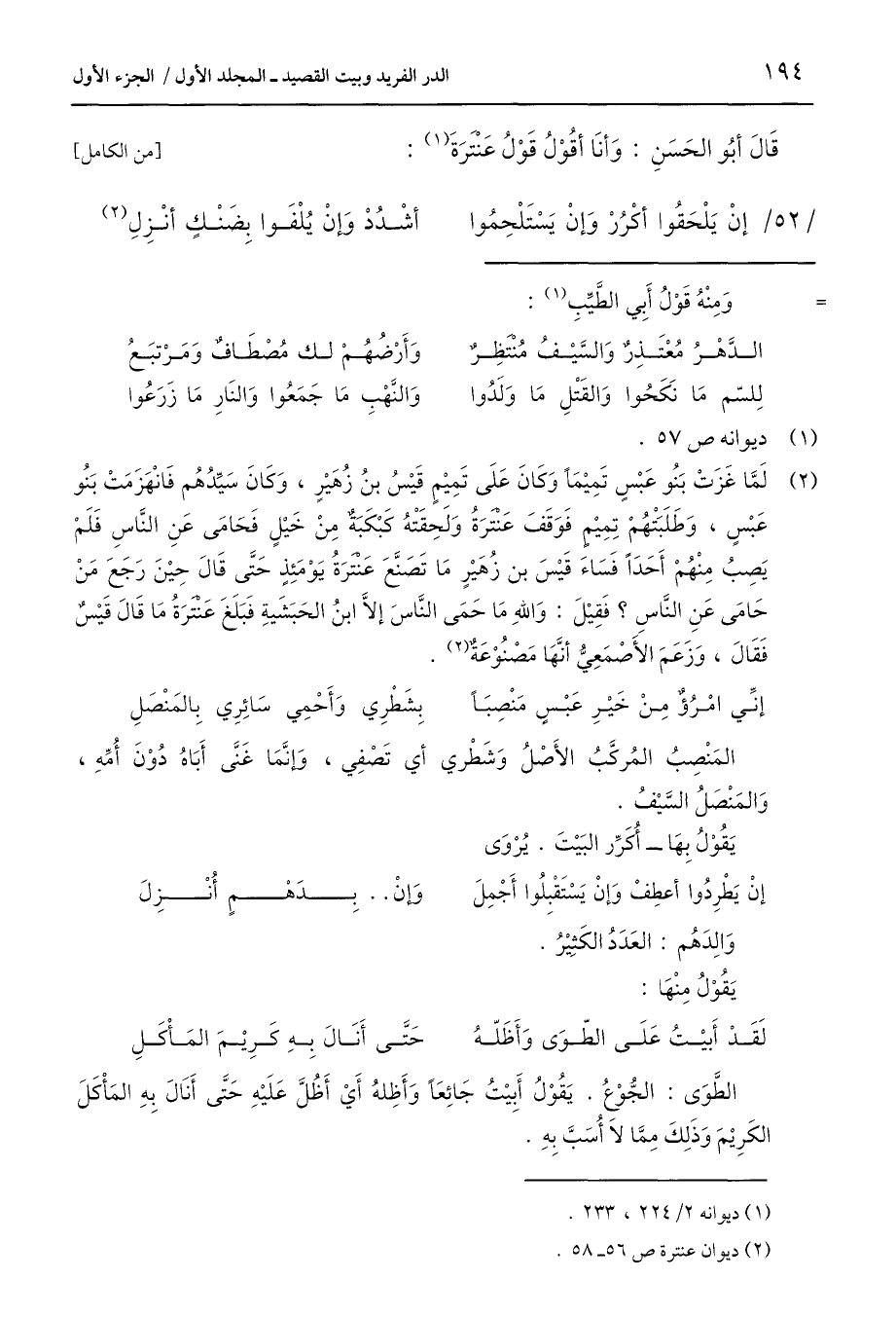 (2) ديوان عنترة ص 56 - 58.