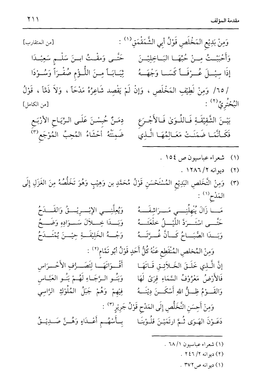وَمِنْ لَطِيْفِ المَخْلَصِ، وَإِنْ لَمْ يَقْصد شَاعِرُهُ مَدْحًا، وَلَا ذَمًّا، قَوْلُ البُحْتُرِيِّ (¬2): [من الكامل]