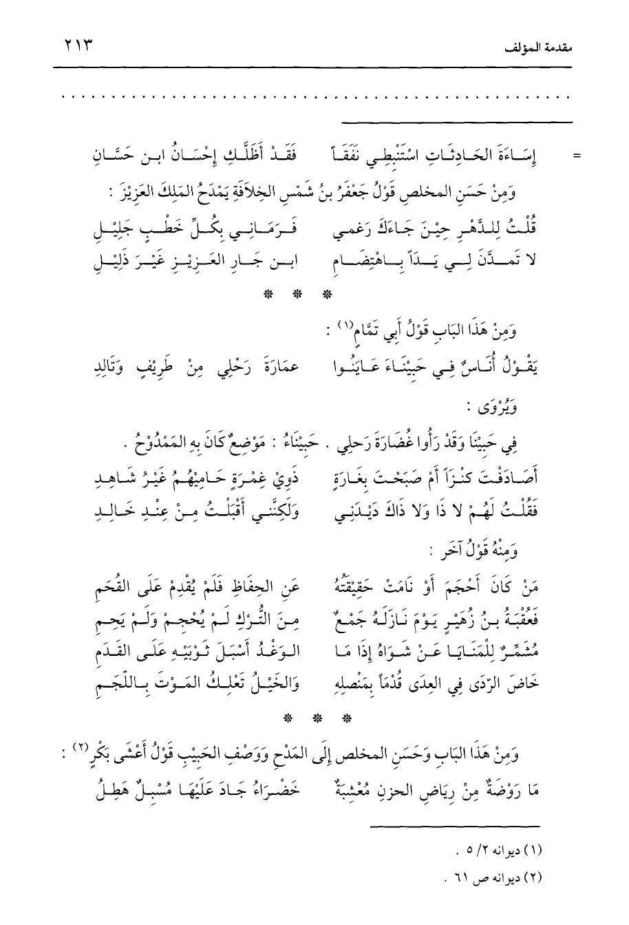 وَمِنْ هَذَا البَابِ قَوْلُ أَبِي تَمَّامٍ (1):