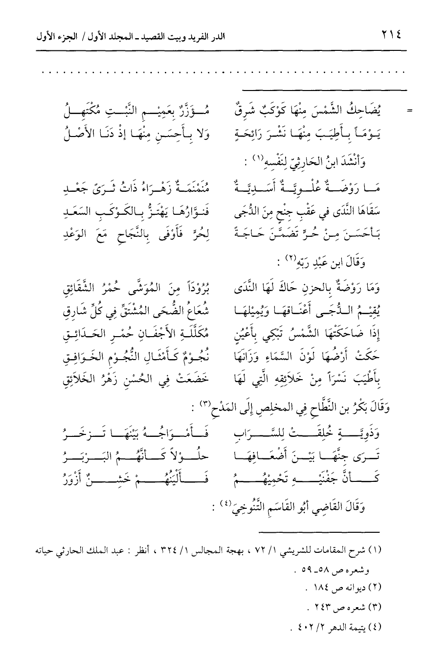 (1) شرح المقامات للشريشي 1/ 72، بهجة المجالس 1/ 324، أنظر: عبد الملك الحارثي حياته وشعره ص 58 - 59.