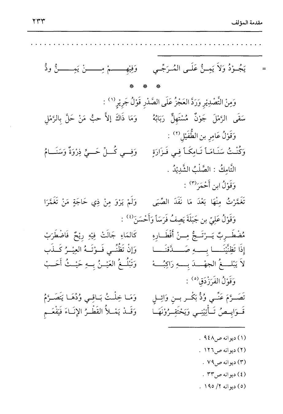 وَمِنْ التَّصْدِيْرِ وَرَدَّ العَجْزُ عَلَى الصَّدْرِ قَوْلُ جَرِيْرٍ (1):