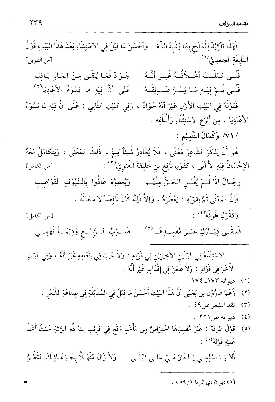 فَهَذَا تأكِيْدٌ لِلْمَدْحِ بمَا يُشْبهُ الذَّمَّ. وَأحْسَنُ مَا قِيْلَ فِي الاسْتِثْنَاءِ بَعْدَ هَذَا البَيْتِ قَوْلُ النَّابِغَةِ الجعْدِيِّ (¬1): [من الطويل]