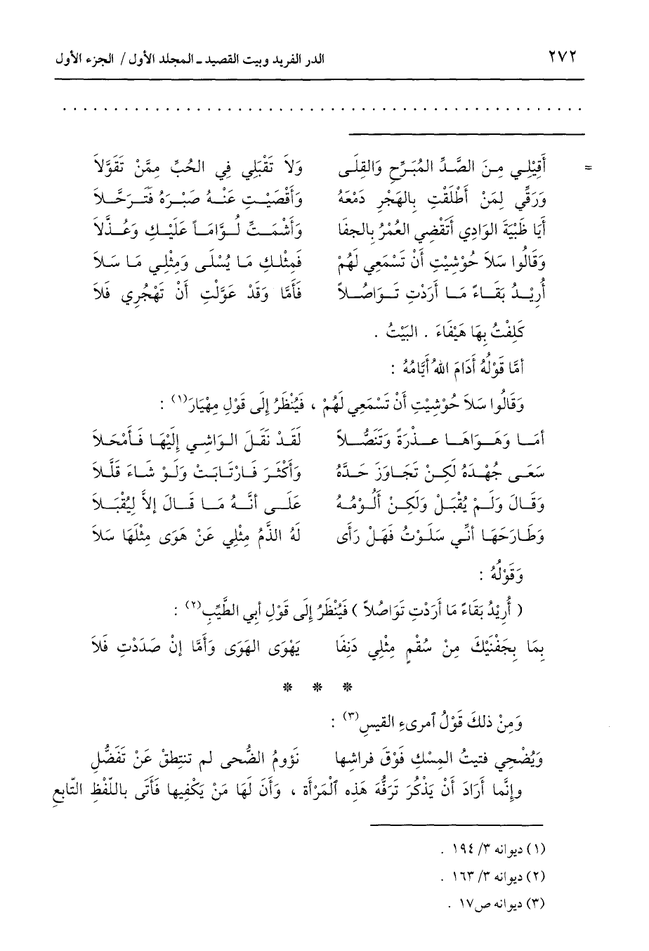(أُرِيْدُ بَقَاءً مَا أَرَدْتِ تَوَاصُلًا) فَيُنْظَرُ إِلَى قَوْلِ أَبِي الطَّيِّبِ (2):