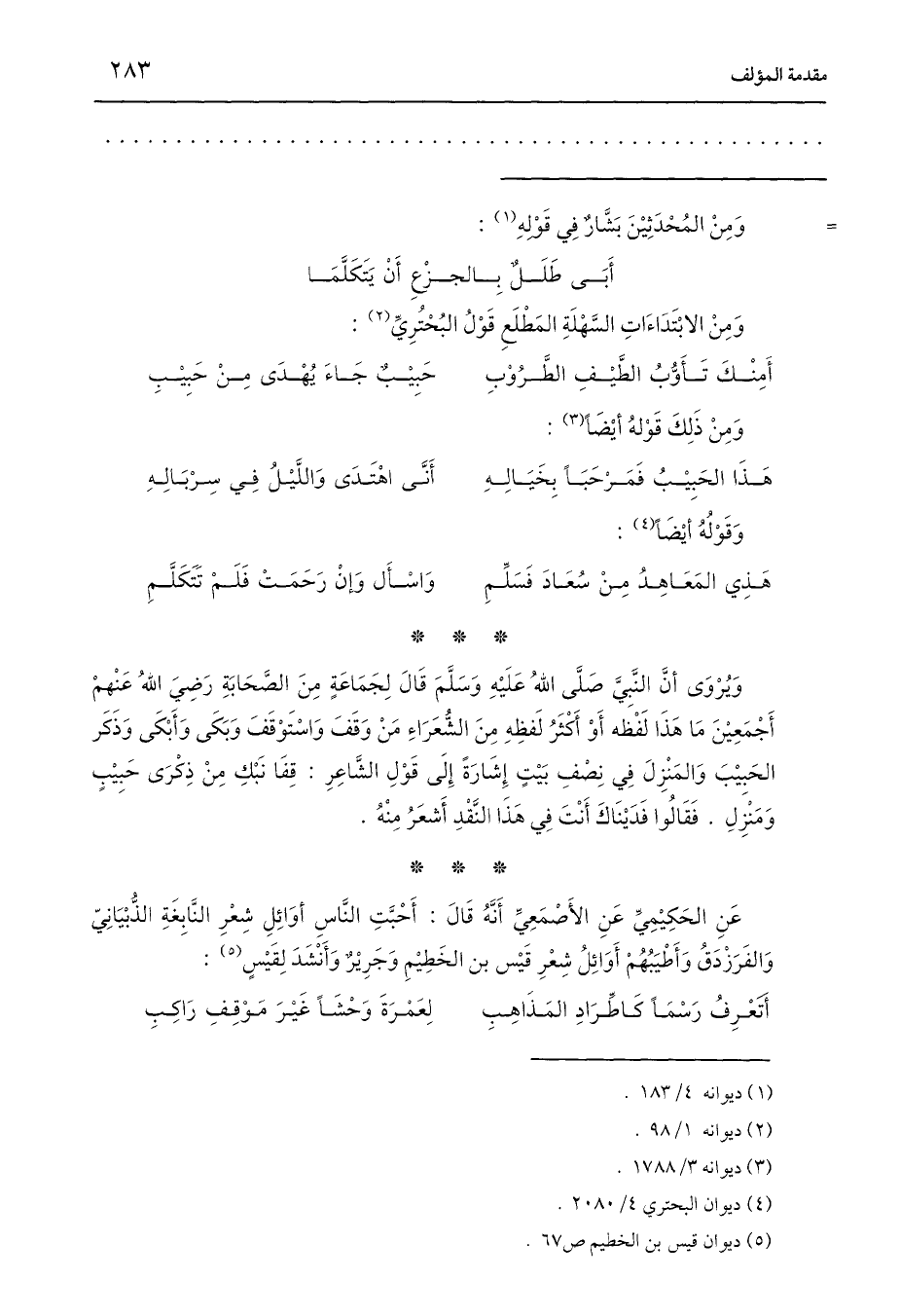 = وَمِنْ المُحْدَثِيْنَ بَشَّارٌ فِي قَوْلِهِ (1):