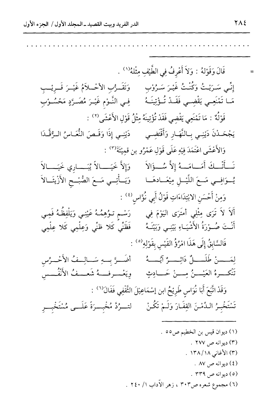 (6) مجموع شعره ص 303، زهر الآداب 1/ 240.