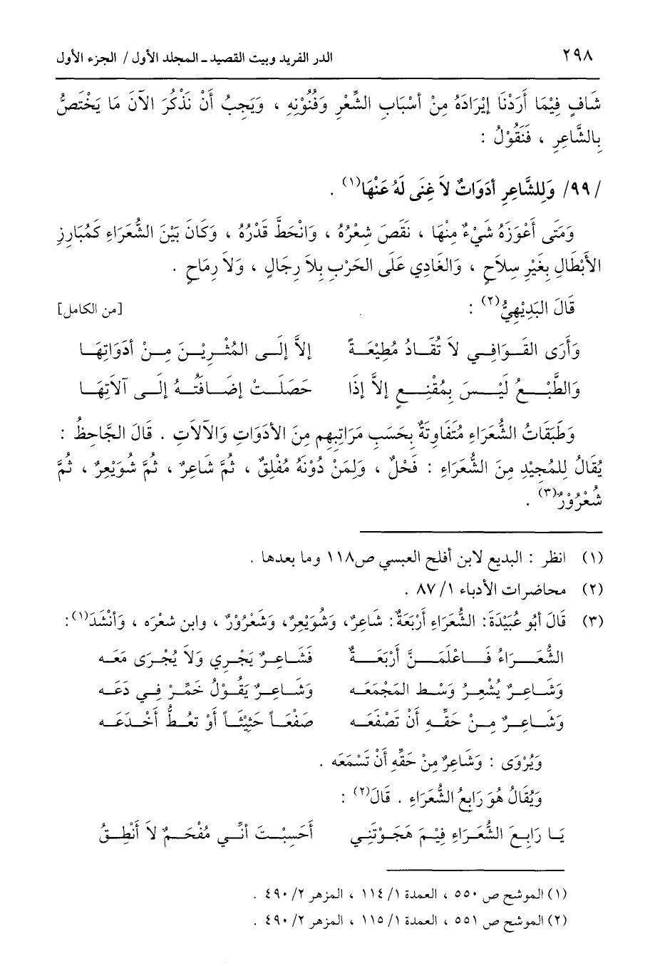 (1) الموشح ص 550، العمدة 1/ 114، المزهر 2/ 490.