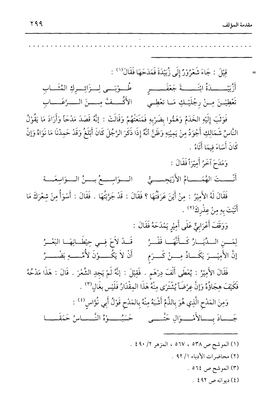 (1) الموشح ص 538، 567، المزهر 2/ 490.
