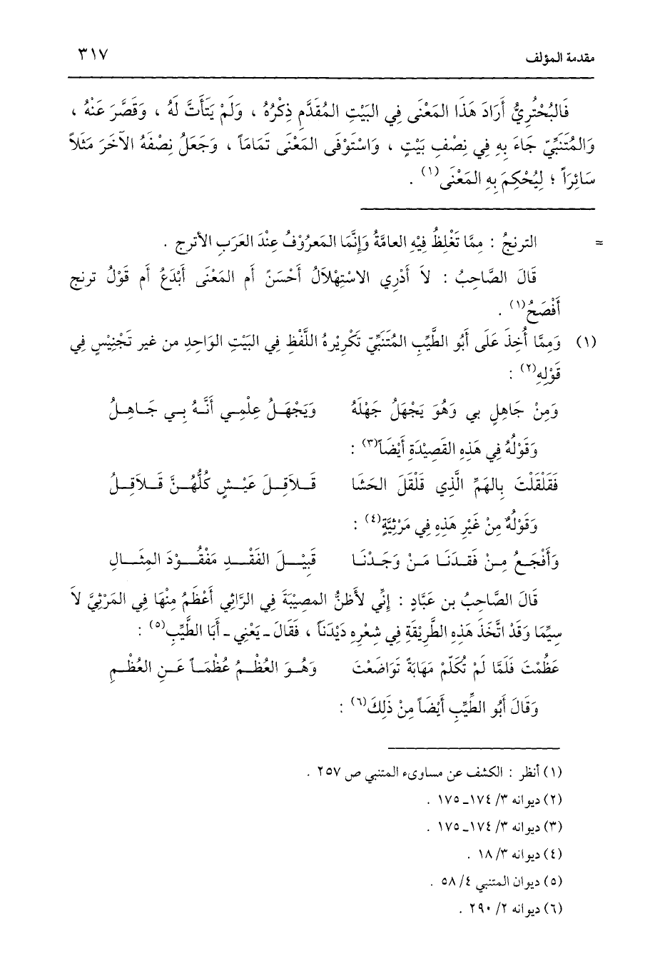 (1) أنظر: الكشف عن مساوئ المتنبي ص 257.