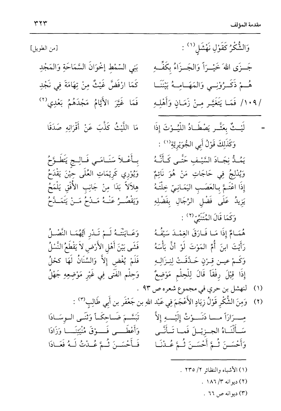 (¬2) وَمِنَ الشُّكْرِ قَوْلُ زِيَادٍ الأَعْجَمَ فِي عَبْد اللَّهِ بن جَعْفَر بن أَبِي طَالِبٍ (3):