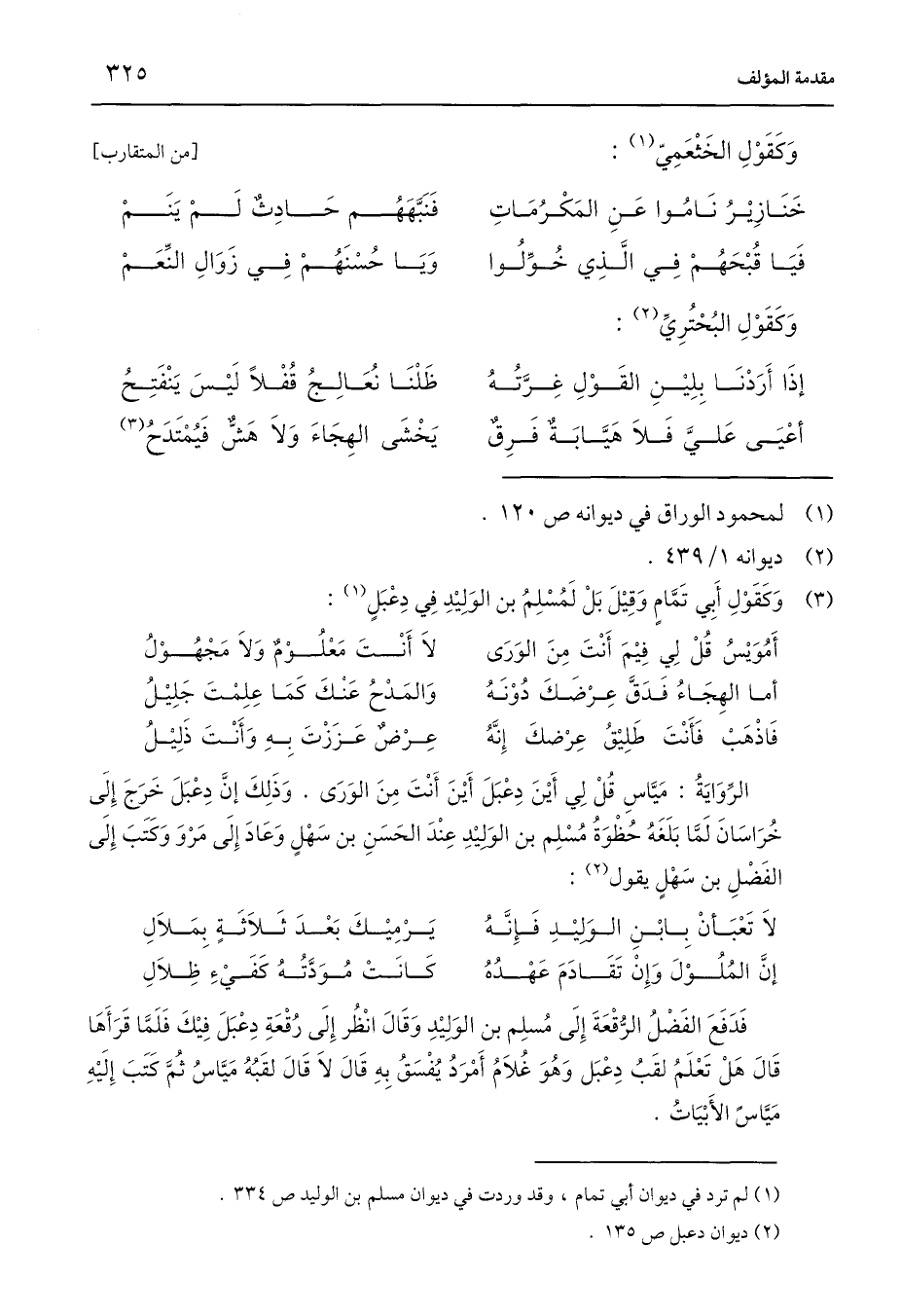 (¬3) وَكَقَوْلِ أَبِي تَمَّامٍ وَقِيْلَ بَلْ لَمُسْلِمُ بن الوَليْدِ فِي دِعْبَلٍ (1):